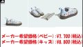 ベビー(11.0-16.5cm)とキッズ(17.0-21.5cm)両サイズ展開しており、キッズは面ファスナーストラップ+伸縮性シューレース 、ベビーは二つの面ファスナークロージャー。
