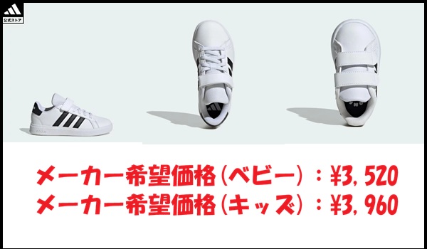アディダスが展開する定番スニーカー「グランドコート」シリーズのキッズモデル。
