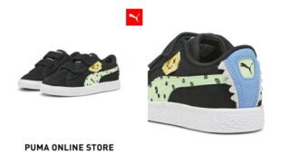 アニメとスポーツの世界を、ストリートスタイルで融合したPUMAとONE PIECEのコラボモデル。プーマのアイコニックスニーカーであるスウェードに、新四皇の一人である「千両道化のバギー」をイメージしたカラーリングを施したキッズモデルです。